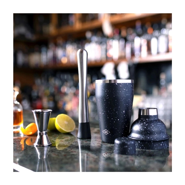 Dodatni opis: Set za koktele se sastoji od šejkera koji je napravljen od nerdjajućeg čelika merice od nerđajućeg čelika i tučka. Merica je dvostrana zapremine 15 ml i 30 ml. Zapremina šejkera je 500ml i omogućava pravljene najrazličitijih koktela. Za usitnjavanje (gnječenje) biljnih ili voćnih sastojaka koktela pobrinuće se tučak napravljen takodje od nerdjajućeg čelika. Kad imate ovakav šejker sa malo pažnje ljubavi i u dobrom društvu miksovanje koktela postaje prava umetnost.
