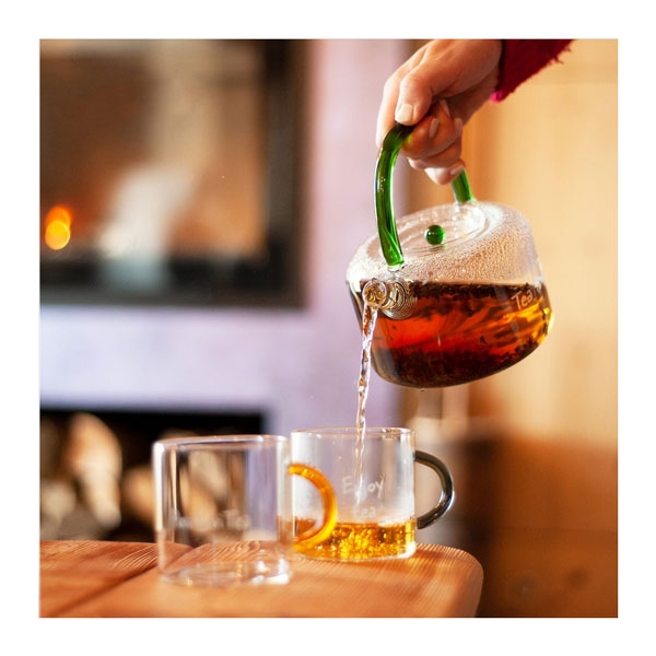 Dodatni opis: Čajnik od borosilikatnog stakla sa filterom na izlivu drškom u boji i ukrasnim natpisom ITea Time. Njegov moderan oblik i filter na izlivu čine ovaj čajnik jedinstvenim i originalnim.