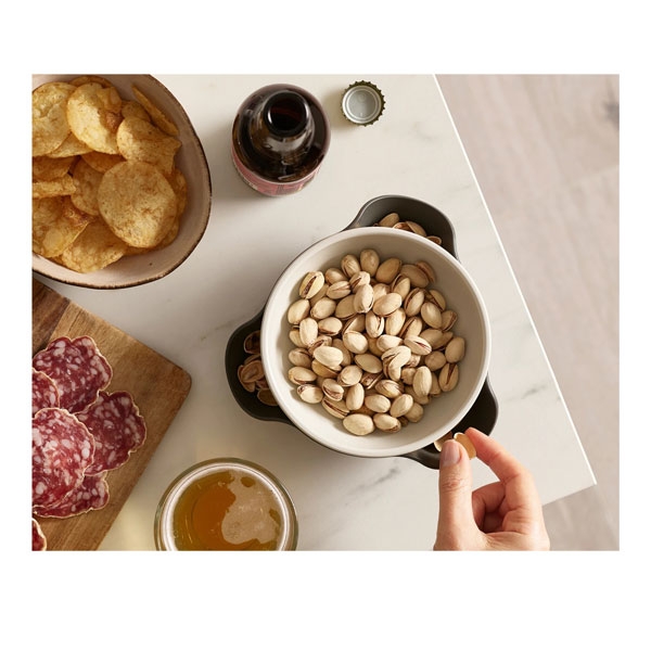 Dodatni opis: Double Dish činija za grickalice je savršeno rešenje za posluživanje hrane kao što su masline pistaći i sve druge sitne namirnice sa nejestivim delovima. Njegov jedinstveni dizajn se sastoji od posude za posluživanje na gornjem delu naslonjene na veću činiju za prikupljanje ostataka. Činija je napravljena tako da ima 3 zakrivljena dela u obimu koja omogućavaju da se ljuske i koštice odlože i sakriju unutar nje. Zbog ove mogućnosti potreba za dodadnim tanjirićem ili činijom za otpad je eliminisana. Double Dish činija za grickalice je napravljena od melamina. Double Dish se može u razdvojenom stanju koristiti i kao 2 zasebne činije za posluživanje drugih grickalica. Double Dish činija za grickalice se može prati u mašini za sudove. Ova činija dolazi u nijansama sive boje.