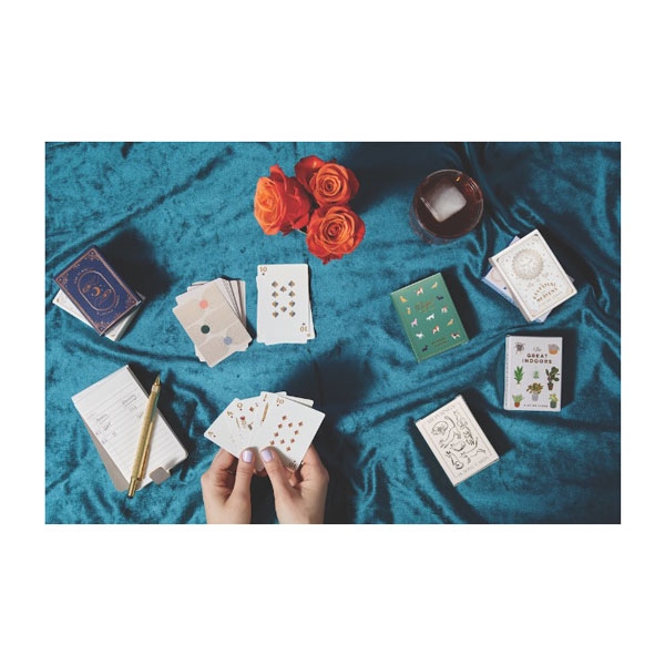 Dodatni opis: Kolekcija proizvoda DesignWorks Ink namenjena je piscima sanjarima studentima maštarima i poslovnim ljudima koji vole suptilan savremen dizajn. Proizvodi za kuću i kancelariju dizajnirani su da komuniciraju sa različitim tipovima ljudi ali koji imaju zajedničku crtu- ljubav prema prefinjenom dizajnu. Iz ove kolekcije dolazi nam proizvod koji je namenjen zabavi i slobodnom vremenu. U pitanju je špil od 52 karte -Blue Shapes. Karte su štampane sa zlatnom bojom i donose nam geometrijske crteže i poruke u kojim možemo samo da uživamo. Ovaj jedinstveni špil karata može da bude savršen poklon za sve ljubitelje kartanja kao i za ljude koji su ljubitelji savremene umetnosti.
