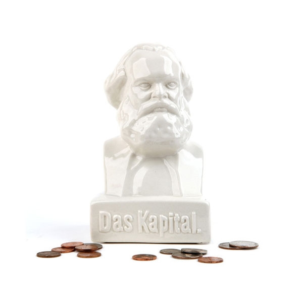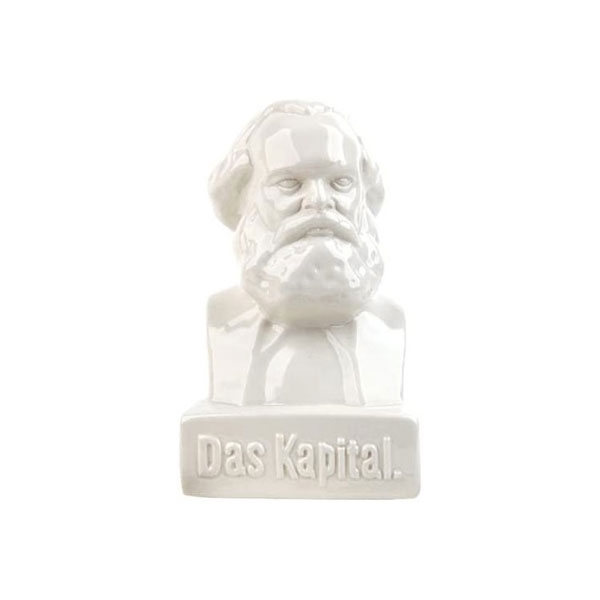 Dodatni opis: Nemački filozof i ekonomista Karl Marks napisao je „Kapital krajem 19. veka. Ovo delo je u osnovi opis kako kapitalistički sistem funkcioniše i kako će se tvrdio je Marks samouništiti. Jednostavno rečeno Marks tvrdi da je ekonomski sistem koji se zasniva na profitu pojedinca nikako ne može da bude stabilan. Bilo da ste deo buržoazije ili proleterijata svakako morate štedeti. A ko će bolje od njega da nas podseća na to koliko je štednja bitna? Verujete li da je u ova smutna vremena poveriti Vaš novac Karlu Marksu najpametniji potez? U tom slučaju keramička kasicamarksica je odgovor. Ubacite svoj kapital u glavu poznatog filozofa! Možda nećete uštedeti puno ali možete deci da date primer kako se štedi ili jednostavno da oplemenite svoj životni prostor. Kasica je napravljena od keramike i zajnirana je kao mala bista koja može da bude deo svakog modernističkog i savremenog doma. Kapital Vas samih Vaših prijatelja ili mladih naraštaja koji se uče ekonomisanju uz prve džeparce biće bezbedniji u nedrima biste autora Kapitala .