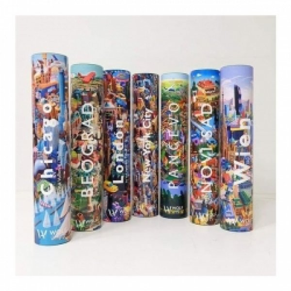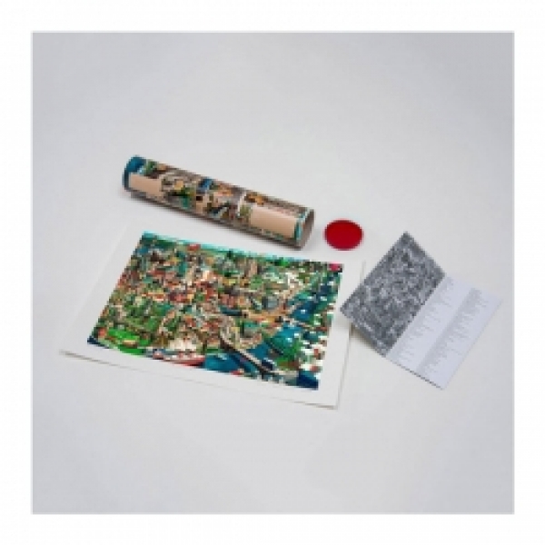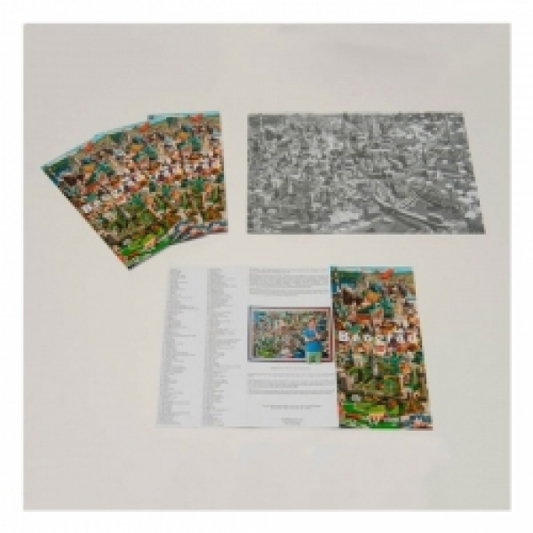 Dodatni opis: Uz svaku grafiku priložena je crno-bela verzija slike na kojoj su na engleskom jeziku nabrojani svi naslikani objekti pa se grafika može koristiti i kao turistički vodič.