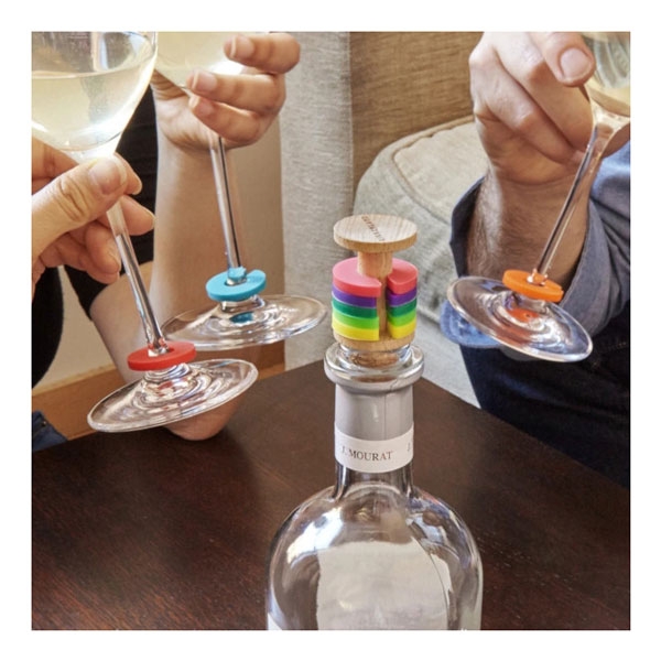 Višebojni obeleživači za vinske čaše sa zatvaračem od plute